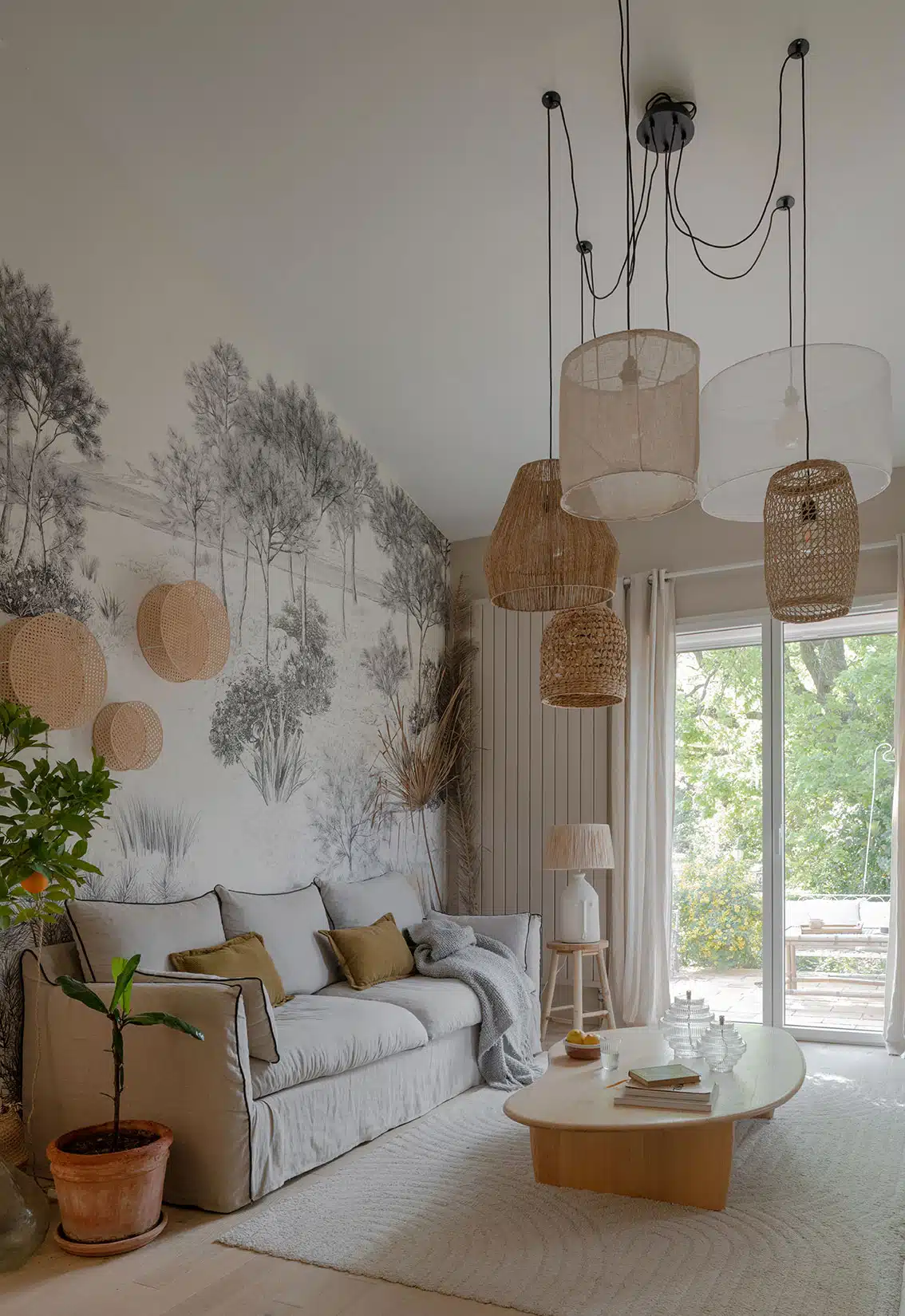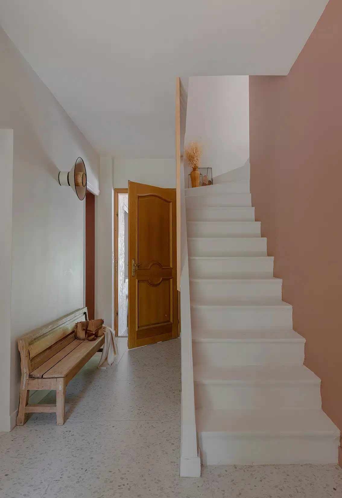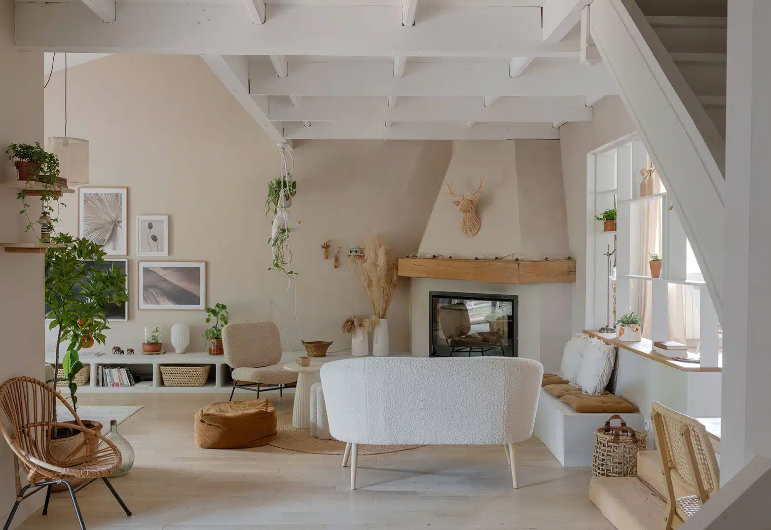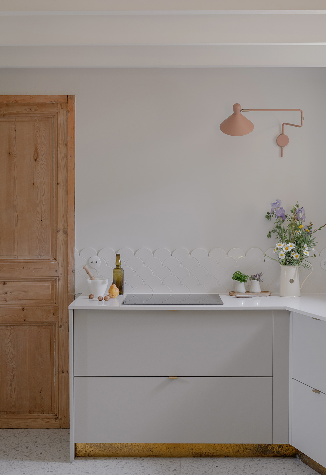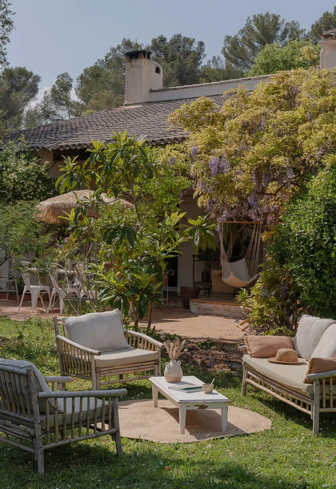 Cette maison des années 70 a été entièrement rénovée, restructurée et repensée pour s’adapter aux besoins d’une famille de quatre personnes. Pensée comme une maison de famille chaleureuse, elle offre aujourd’hui de beaux volumes intérieurs où les espaces de vie s’ouvrent les uns sur les autres afin de laisser circuler la lumière et le regard. La structuration reste atypique, avec différents jeux de niveaux qui viennent naturellement délimiter les fonctions. La grande cuisine s’ouvre ainsi sur un bel espace repas, tandis que le salon, aménagé en L autour de la cheminée, est subtilement séparé du reste des pièces de vie par un claustra dessiné sur mesure, apportant à la fois fonctionnalité et touche graphique. La mezzanine existante a été rénovée et fermée grâce à une verrière atelier blanche réalisée sur mesure, permettant de créer un nouvel espace tout en conservant la luminosité. Enfin, de nombreux éléments chinés viennent ponctuer les espaces et apportent caractère et charme à cette maison de famille. Des touches de couleur et de papier peint viennent habiller subtilement les différents espaces. À l’extérieur, on profite d’un beau jardin et de multiples terrasses, parfaites pour partager de bons moments en famille ou entre amis.