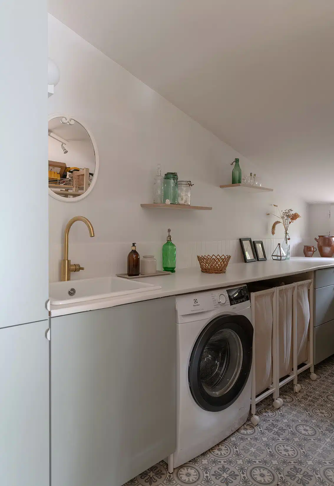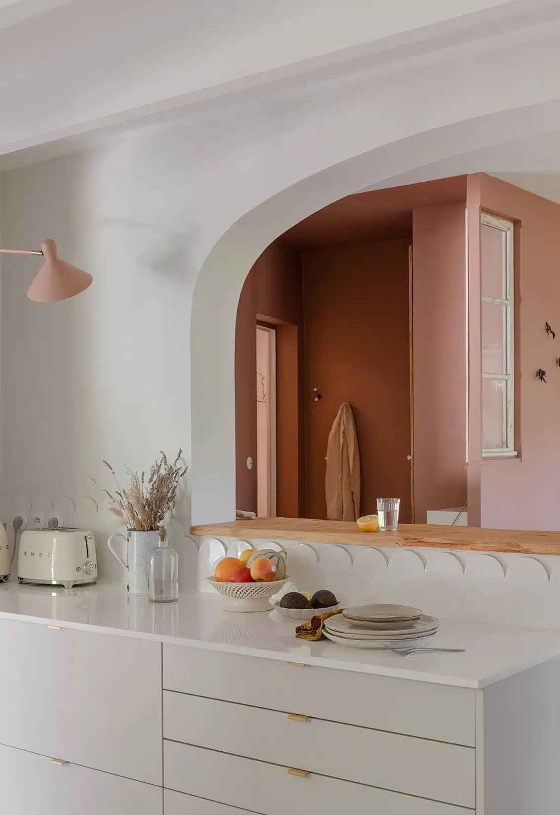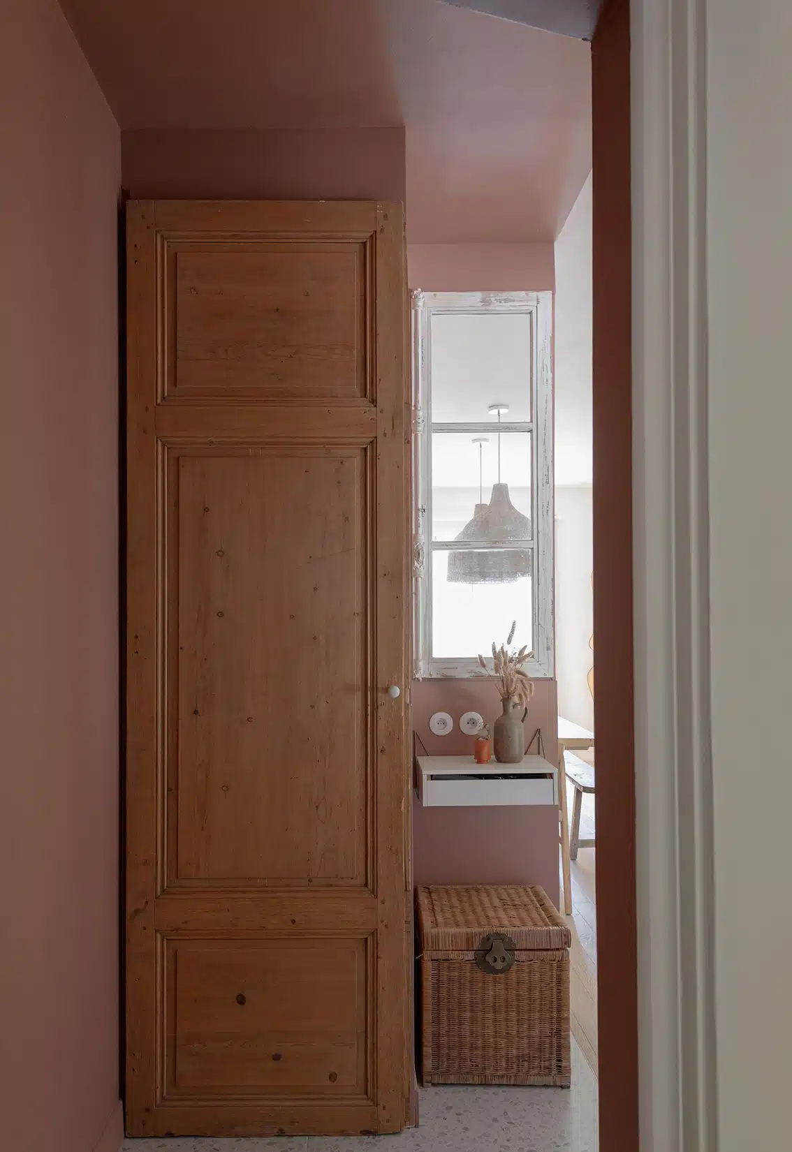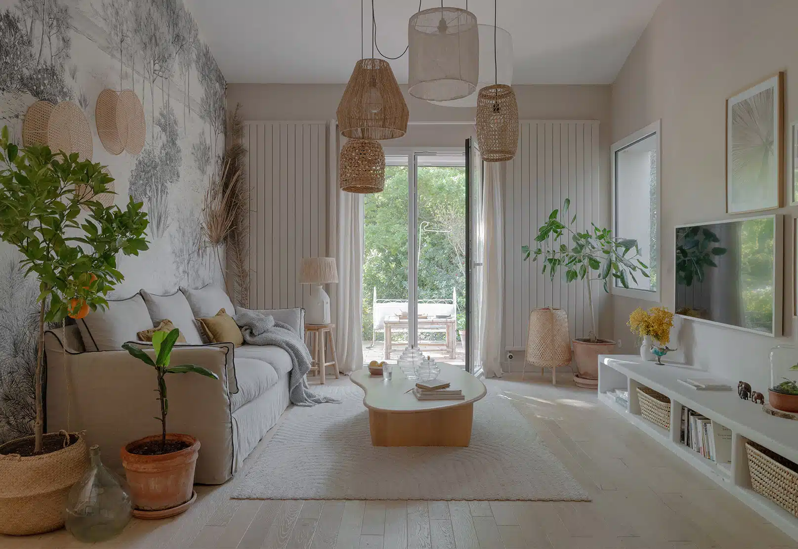 Cette maison des années 70 a été entièrement rénovée, restructurée et repensée pour s’adapter aux besoins d’une famille de quatre personnes. Pensée comme une maison de famille chaleureuse, elle offre aujourd’hui de beaux volumes intérieurs où les espaces de vie s’ouvrent les uns sur les autres afin de laisser circuler la lumière et le regard. La structuration reste atypique, avec différents jeux de niveaux qui viennent naturellement délimiter les fonctions. La grande cuisine s’ouvre ainsi sur un bel espace repas, tandis que le salon, aménagé en L autour de la cheminée, est subtilement séparé du reste des pièces de vie par un claustra dessiné sur mesure, apportant à la fois fonctionnalité et touche graphique. La mezzanine existante a été rénovée et fermée grâce à une verrière atelier blanche réalisée sur mesure, permettant de créer un nouvel espace tout en conservant la luminosité. Enfin, de nombreux éléments chinés viennent ponctuer les espaces et apportent caractère et charme à cette maison de famille. Des touches de couleur et de papier peint viennent habiller subtilement les différents espaces. À l’extérieur, on profite d’un beau jardin et de multiples terrasses, parfaites pour partager de bons moments en famille ou entre amis.