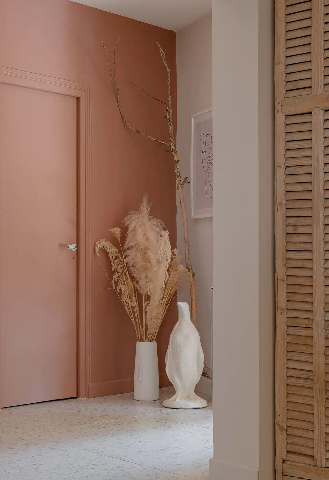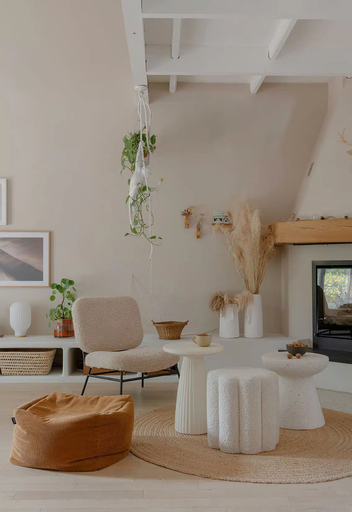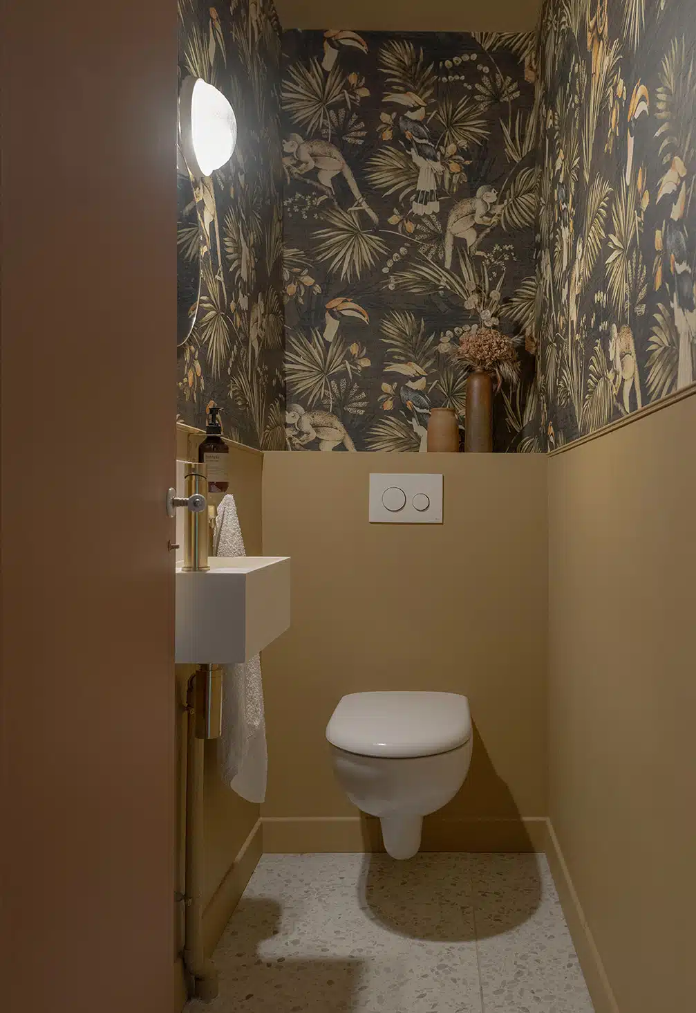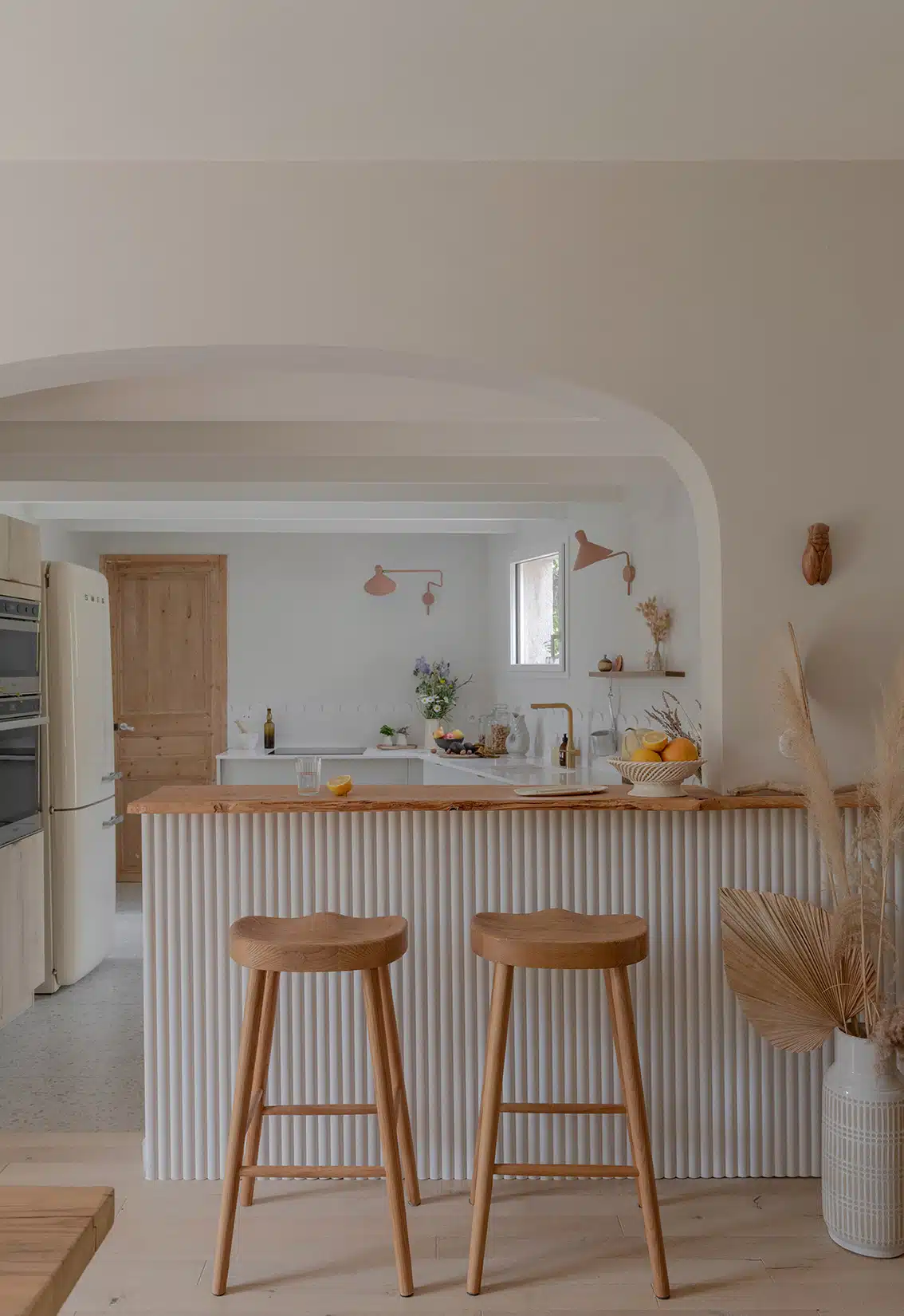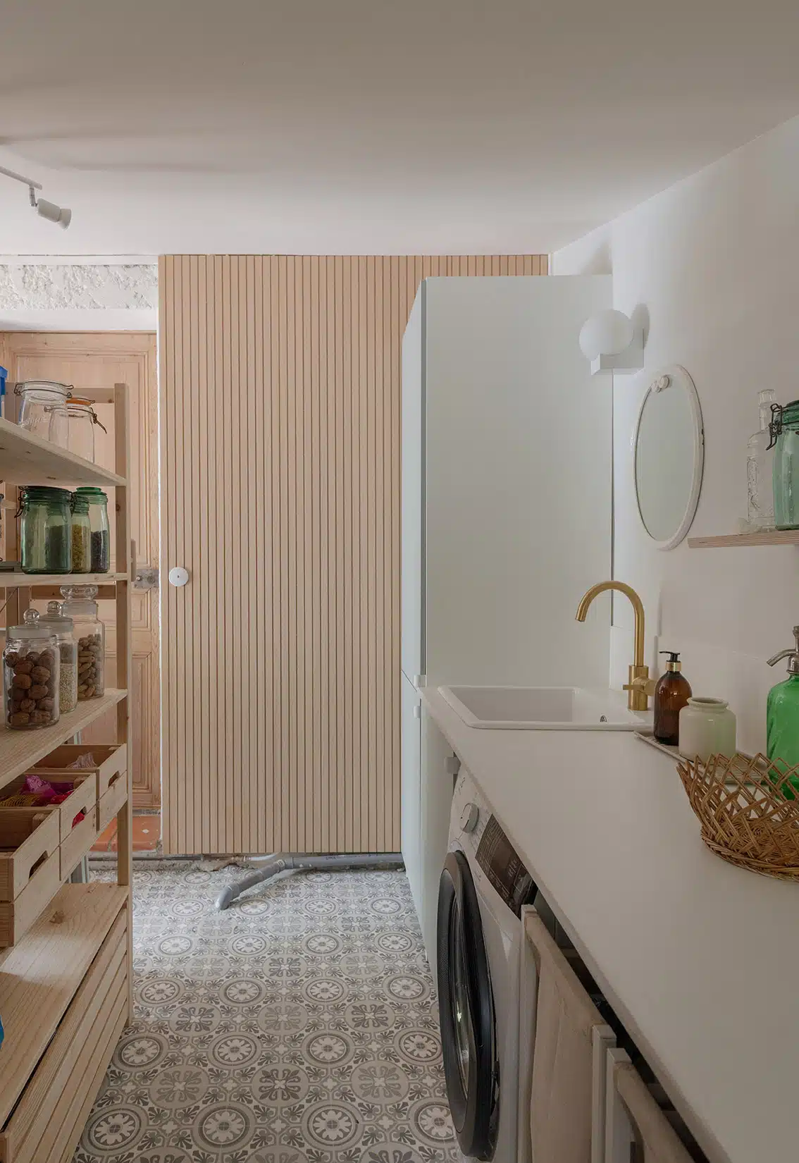 Cette maison des années 70 a été entièrement rénovée, restructurée et repensée pour s’adapter aux besoins d’une famille de quatre personnes. Pensée comme une maison de famille chaleureuse, elle offre aujourd’hui de beaux volumes intérieurs où les espaces de vie s’ouvrent les uns sur les autres afin de laisser circuler la lumière et le regard. La structuration reste atypique, avec différents jeux de niveaux qui viennent naturellement délimiter les fonctions. La grande cuisine s’ouvre ainsi sur un bel espace repas, tandis que le salon, aménagé en L autour de la cheminée, est subtilement séparé du reste des pièces de vie par un claustra dessiné sur mesure, apportant à la fois fonctionnalité et touche graphique. La mezzanine existante a été rénovée et fermée grâce à une verrière atelier blanche réalisée sur mesure, permettant de créer un nouvel espace tout en conservant la luminosité. Enfin, de nombreux éléments chinés viennent ponctuer les espaces et apportent caractère et charme à cette maison de famille. Des touches de couleur et de papier peint viennent habiller subtilement les différents espaces. À l’extérieur, on profite d’un beau jardin et de multiples terrasses, parfaites pour partager de bons moments en famille ou entre amis.